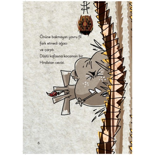 Ah, ne şaşkınlık! Etrafına bakarken yavru fil, düştü başına bir Hindistan cevizi.