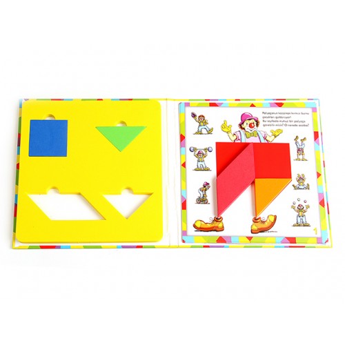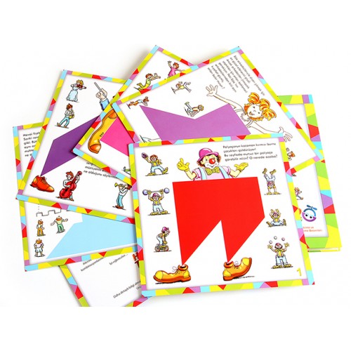 4 zorluk aşamalı 4 kitapçıktan oluşmaktadır. Minik hikayeler, bilgiler ve sorularla zenginleştirilmiş kartlardaki figürleri tamamlamak esastır. Her kitapçıktaki 10 farklı figürü, tüm renkli geometrik şekil parçalarını kullanarak, figür oluşturularak oynanan bir oyundur.