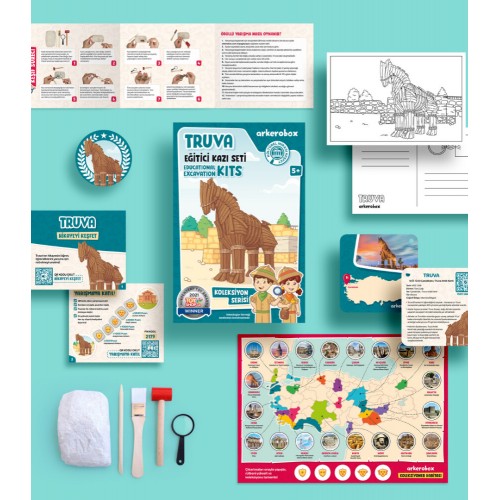 Kazı Bloğu, Çekiç, Büyüteç, Fırça, Kazı Çubuğu, Bilgi Kartı (Yarışma Kartı), Eser Kartı, Kartpostal, Sticker, Kullanma Kılavuzu.