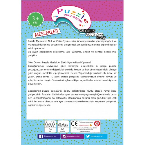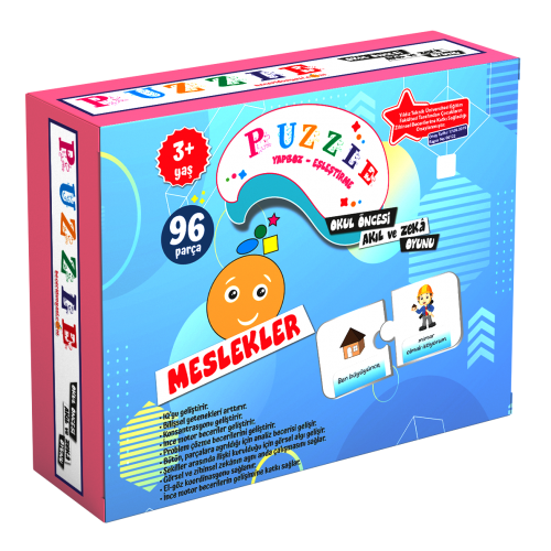 Puzzle Meslekler Akıl ve Zeka Oyunu, okul öncesi çocuklar için hayal gücü ve mantıksal düşünme becerilerini geliştirmek amacıyla hazırlanmış eğlendirici bir zeka oyunudur.