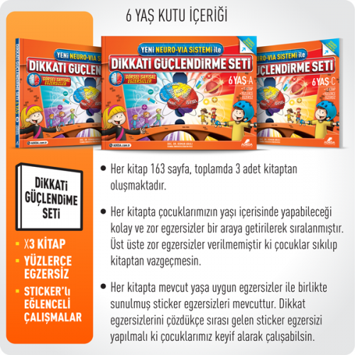 Dikkati güçlendiren egzersizler çocuğun yaşına uygun olarak hazırlanmıştır.