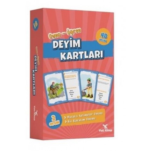 Deyim kartlarımız 48 farklı deyimden oluşmaktadır. Kartın ön yüzünde deyimi anlatan bir görsel, arka yüzünde ise deyimin anlamı yer almaktadır.