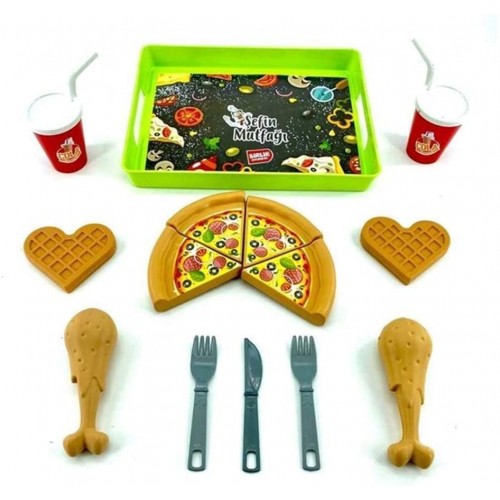 Setin içerisinde :4 Dilim Pizza, 2 Bıçak, 2 Çatal, 2 Meşrubat, 2 Adet Tavuk ve 2 Adet Kurabiye bulunmaktadır.