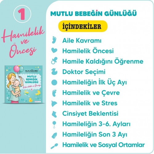 Mutlu Bebeğin Günlüğü serisi, Hamilelik ve Öncesi, Doğum ve Sonrası, İlk Bebeklik ve Gelişim Süreci olarak toplam 4 kitaptan oluşuyor. Doç. Dr. Osman Abalı tarafından yazılan kitap serisi, hamileliğin başından sonuna kadar anne ve baba adaylarını bekleyen kronolojik sıraya uygun olarak hazırlanmıştır. Son kitapta ise bebek sahibi olmayı düşünenlerin ve bebeklik döneminde çocuğu olan bütün ebeveynlerin çocukları büyürken dikkat etmesi gereken bebeklik dönemi genel gelişim basamakları bulunuyor.