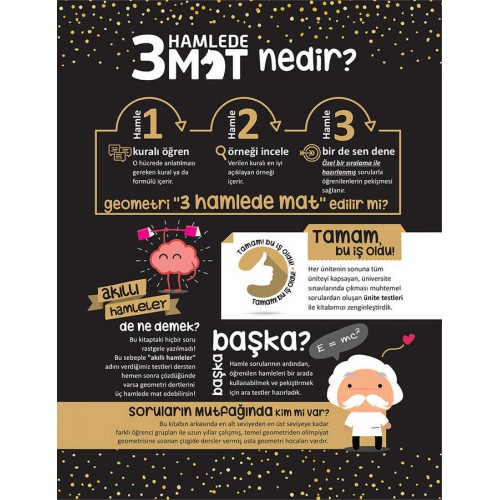 - Hamle 3 : Bir de sen dene - Özel bir sıralama ile hazırlanmış sorularla öğrenilenlerin pekişmesi sağlanır.
