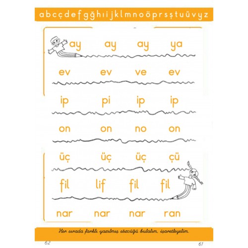 “ABC alfabe” Okul öncesi dönemdeki çocuklarımızın harflerle görsel olarak tanışmasını sağlamak üzere hazırlanmış bir eğitim kitabıdır. Harfleri ya da sözcükleri çizme, boyama, harfler ve sözcüklerdeki benzerlikleri-farklılıkları ayırt etme, saklanmış harfleri bulma, eksik harfleri tamamlama, harfleri izleyerek dolambaçları çözme gibi keyifli birçok çalışma sayfasından oluşmuştur. Bu çalışmalar ilköğretim öncesindeki çocukların eğlenirken, farkında olmadan okuma yazma için gerekli alt yapıyı kurmalarına ya da okuma yazma öğrenme sürecindeki çocukların öğrendiklerinin keyifle pekiştirilmesine yardımcı olacaktır.