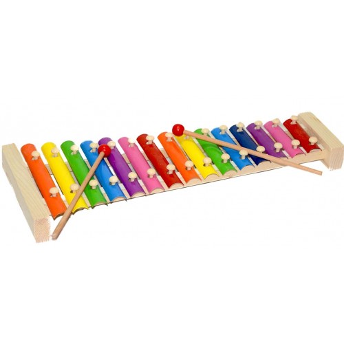 Çocukların eğlenceli vakit geçirmesini sağlar. Ksilofon ile çocuklar müzik aletlerini ve sesleri tanıyacak. Çocuklar bu Ksilofon ile değişik notaları çalabilecekler. Toplamda 15 adet nota bulunmaktadır. Kutu içerisinde 2 adet baget bulunmaktadır. Ürün yaklaşık 42 cm uzunluğundadır. 9 renkten oluşmaktadır. Çocuğunuzun ritim duygularının gelişimine yardımcı olur. Zeka geliştiren oyuncaklar çocuğunuzun gelişim evresinde temel kavramları kolayca öğrenmesine yardımcı olan oyuncaklardır. El becerisini geliştiren oyuncaklar çocukların kas gelişimini, özgüven gelişimini ve el-göz koordinasyonunu geliştirir. Ahşap ve metal malzemeden üretilmiştir. Kutu Ölçüleri : 44,5 x 20,3 x 6 cm.