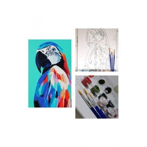 Sayılarla Boyama Fırça Ve Boya Hediyeli Tuval Seti / Papağan