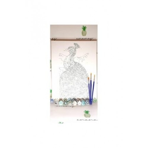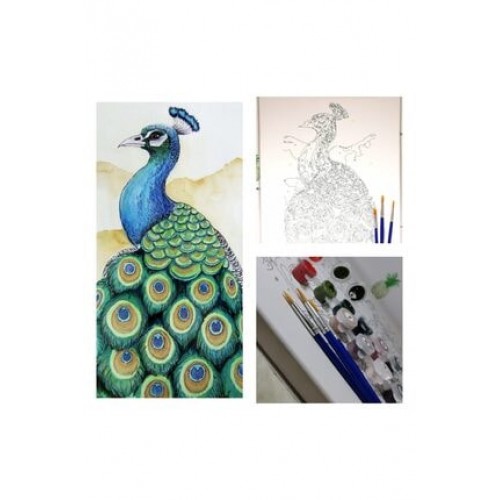Sayılarla Boyama Fırça Ve Boya Hediyeli Tuval Seti / Tavus Kuşu