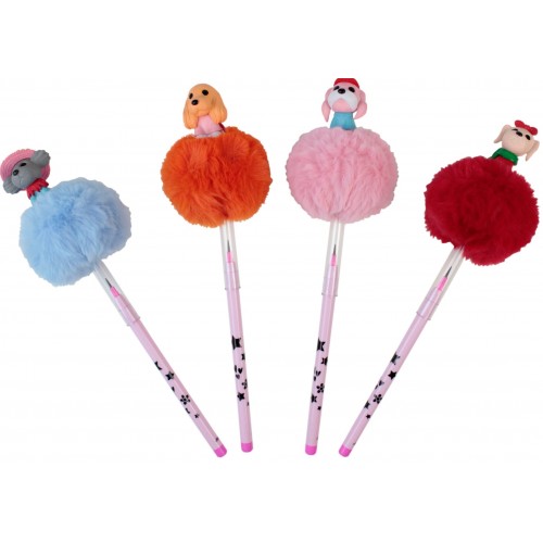 Dolphin POP-9115 Ponpon Peluş Pati Başlıklı Geçmeli Kalem