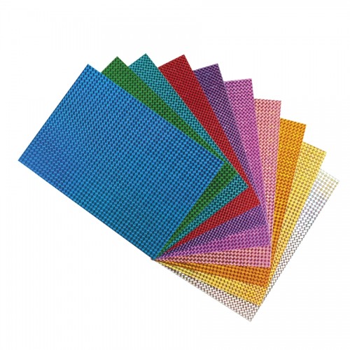 A4 ebadındaki metalik kartonlar 10 farklı renk ve desendedir.