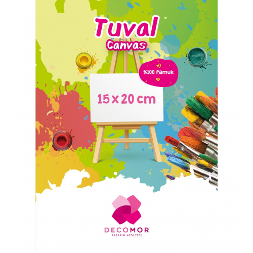 Decomor 15x20 cm Dikdörtgen Tuvaller, %100 Pamuk kaliteli tuval bezinden üretilmiş, amatör ve öğrenciler için yağlı boya, akrilik boya ve sulu boya çalışmalarına uygun, yüzeyi beyaz renkli ve orta dokulu, doğal ahşap şaseye arkadan paslanmaz çelik zımbalarla gerdirilmiş ekonomik tuvallerdir.
