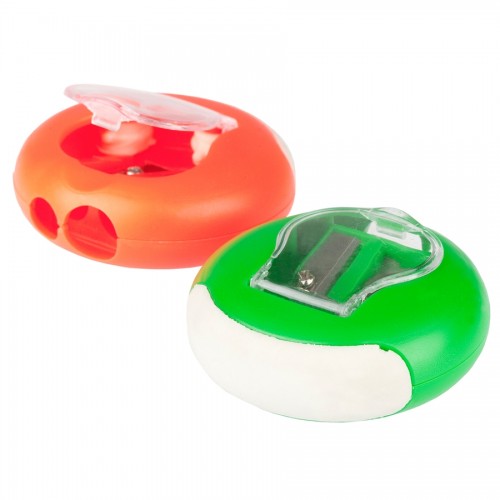 Çiftli Depolu Silgili Kalemtraş Turuncu Renk