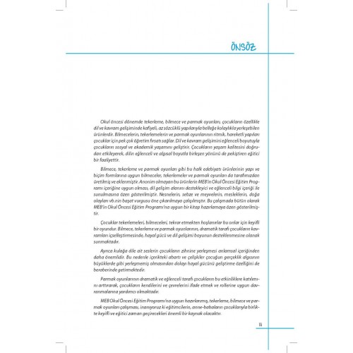 Okul öncesi dönemde tekerleme, bilmece ve parmak oyunları, çocukların özellikle dil ve kavram gelişiminde kafiyeli,Mahmut Yılmaz az sözcüklü yapılarıyla belleğe kolaylıkla yerleşebilen ürünlerdir. Bilmecelerin, tekerlemelerin ve parmak oyunlarının ritmik, hareketli yapıları çocuklar için pek çok öğretim fırsatı sağlar. Dil ve kavram gelişimini eğlenceli boyutuyla çocukların sosyal ve akademik yaşamını geliştirir. Çocukların yaşam kalitesini doğrudan etkileyerek, dilin eğlenceli ve algısal boyutla birleşen yönünü de pekiştiren eğitici bir faaliyettir.