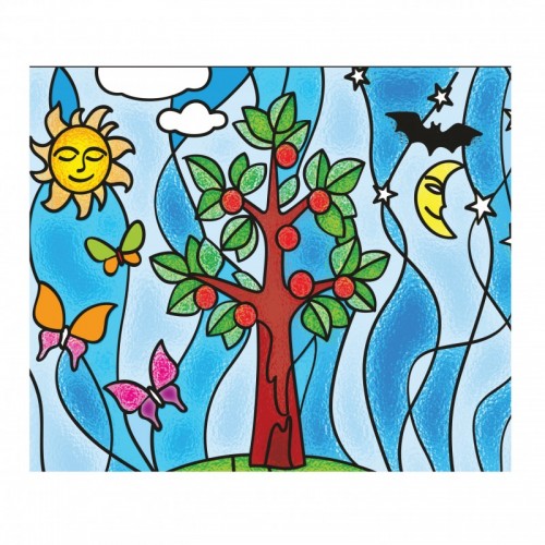 Cam Vitray PVC üzerine basılmış desen ve bu desenin uygun şekilde boyanmasıyla oluşmuş görsel değeri yüksek bir üründür. Cam Vitray desenin boyanmasıyla çocukların el becerileri gelişmekte ayrıca çıkan ürünün görsel değeri çocuğu sanata yönlendirmektedir.