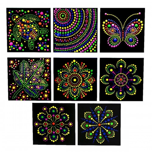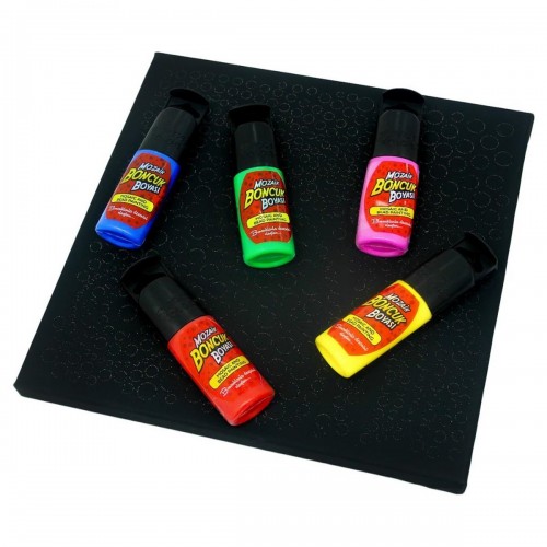 İçerisinde 5 farklı renk boyama tüpü ve 30x30 ölçülerinde desenli siyah tuval yer almaktadır.