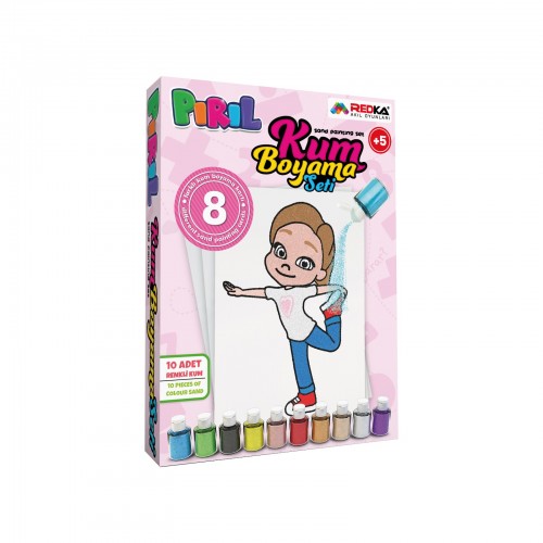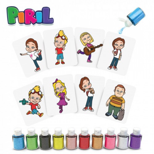 Sanat ve Eğlence Bir arada! Çocukların hem el becerilerinin gelişmesine hem de zihinsel gelişimlerine katkı sağlar. Çocukların eğlenceli etkinlikler yapmasına imkân tanıyan Pırıl Kum Boyama Seti, çocukların el becerilerinin gelişmesine katkı sağlarken tasarım, renk bilgisi ve renk uyumu gibi yeteneklerinin gelişmesine de olanak tanır. Kum Boyama seti çocukların ve yetişkinlerin sevdiği eğlenceli bir etkinliktir. Bu etkinlik, özel hazırlanmış kendinden yapışkanlı kum boyama kartlarının üzerine renkli kumlar dökülerek yapılır.