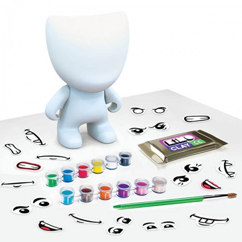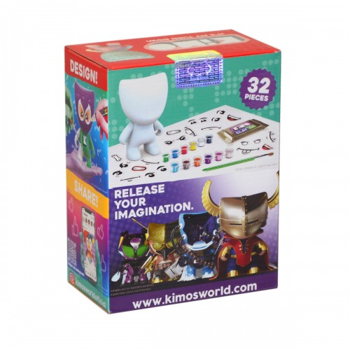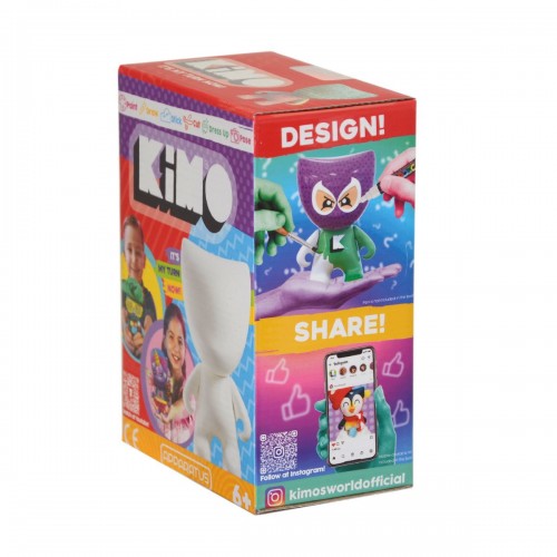 Kutu içeriği; 1 adet Kimo figür (15cm), 12 renk akrilik boya, 1 adet doğal kil, 1 adet fırça, 17 adet yüz ifadesi etiketi, 1 adet Kimo nasıl yapılır kitapçığı