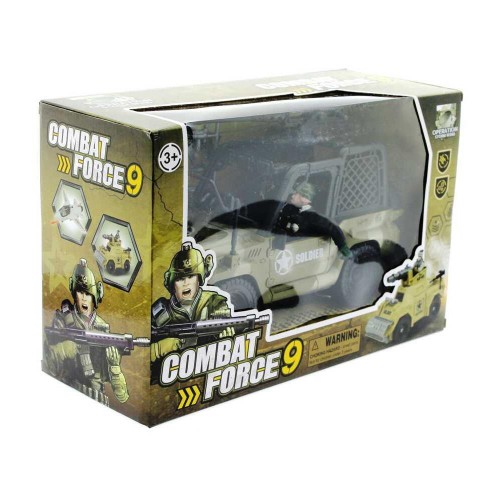 Set içerisinde bir çöl aracı, jipin üzerine monte edilmiş bir silah, ayrıca bir asker figürü ve çeşitli silah ekipmanları mevcuttur.