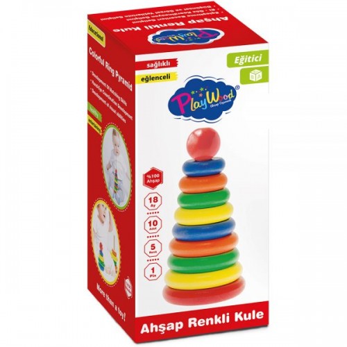 Kutuda Ahşap Renkli Kule / Halka Geçirme