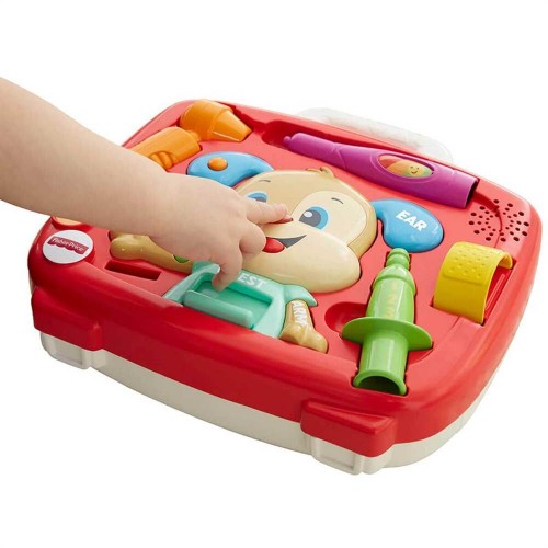 Bu sevimli doktor seti bebeğinize sağlıklı bir öğrenme ve taklit oyunu eğlencesi sunmaktadır. Bebeğiniz Köpekçiği sağlık kontrolünden geçirirken eğlenceli şarkılar ve cümleler aracılığıyla vücudun farklı bölümlerini, renkleri, İngilizce sözcükleri ve daha fazlasını öğrenecek!