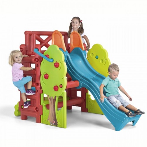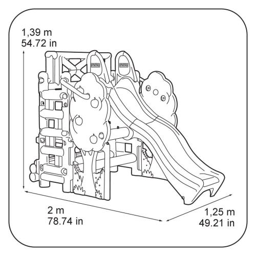 . Platforma tırmanmak için iki yan merdivene sahiptir.. Masaya ve kum havuzuna dönüşebilen katlanabilir bir tezgahı vardır.. Parlak renklere sahiptir.. Güneş ışığına ve hava koşullarına dayanıklıdır.