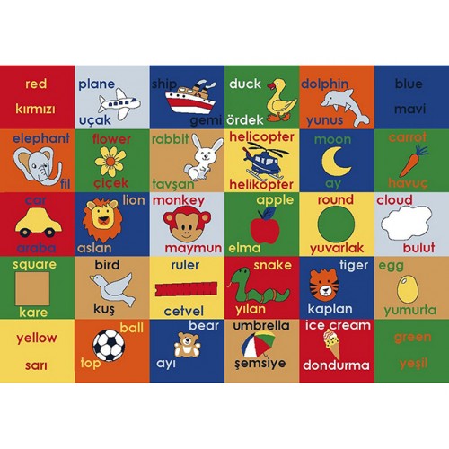 Türkçe - İngilizce Kelimeler Halı 133x190 cm