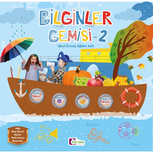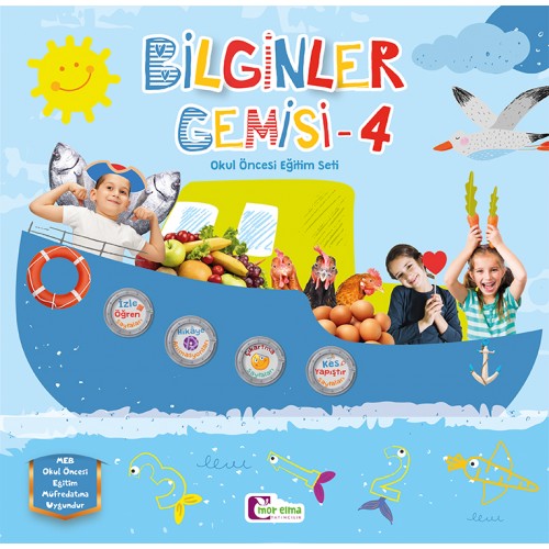 Bilginler Gemisi 4-5 Yaş Okul Öncesi Eğitim Seti, 2020 yılında hazırlanmış yepyeni bir eğitim setidir. Özel ölçüsü ve spiralleri ile kolay ve etkili kullanım sağlar. Kitapların ölçüsü 27×26.5 cm’dir. Kitaplarda çocuk sağlığına uygun bitkisel boyalar kullanılmıştır. Sayfalarda bulunan karekodları telefonunuza yükleyeceğiniz uygulama ile okutarak videolara ve hareketli sayfalara ulaşabilirsiniz.