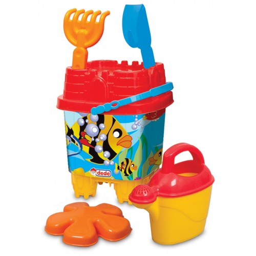 1 adet kova, 1 adet elek, 1 adet kürek, 1 adet tırmık, 1 adet kum çıkarması, 1 adet kale kum çıkarması, 1 adet suluk ve 1 adet değirmen bulunmaktadır.
