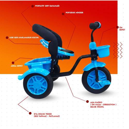Metal Üç Tekerlekli Bisiklet - Mavi