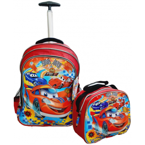 Arabalar - Çekçekli Beslenmeli Takım Okul Çantası