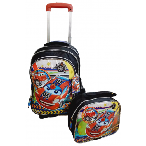 Arabalar - Çekçekli Beslenmeli Takım Okul Çantası