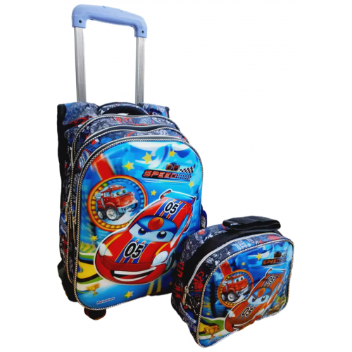 Arabalar - Çekçekli Beslenmeli Takım Okul Çantası