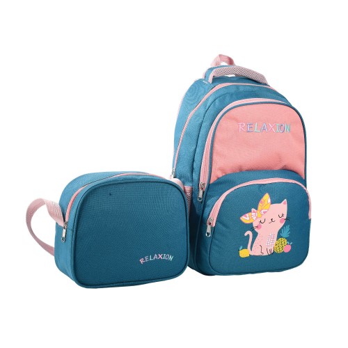 İlkokul Beslenmeli Sırt Çantası - Yeşil Kedi