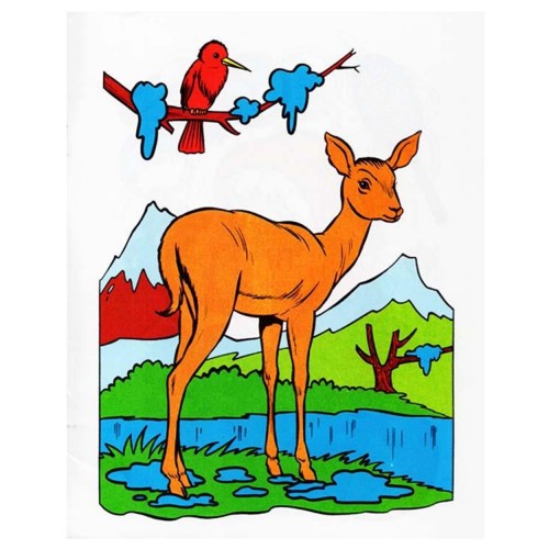 Bir sayfası belli renklerde boyanmış, diğer sayfası çocuğun boyaması için hazırlanmış okul öncesi boyama kitabıdır.