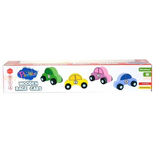 Kutuda Ahşap Yarış Arabaları 4 Asorti