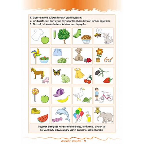 Düşünme becerileri dizisinin sekizinci kitabıdır. Verilen yönergeye dikkatini yoğunlaştırma, yönergeyi bütünüyle algılama, kavrama, akılda tutma istenen sıraya dikkat etme, bilgileri birbiri ile ilişkilendirebilme gibi düşünme becerilerinin yanı sıra dil becerilerini geliştirmeyi hedefleyen bir çalışma kitabıdır.