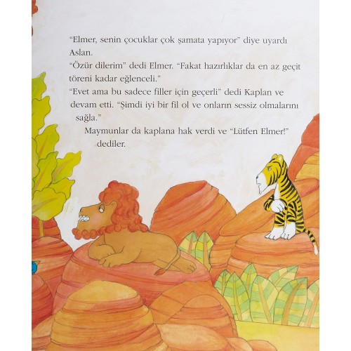 Her yıl bir gün, ormanda Elmer Günü olarak kutlanıyordu. Bu kutlamalar için fillerin hepsi kendini rengârenk boyuyordu. Bu kutlama havası ormanda çok fazla gürültü çıkmasına neden oluyordu ve diğer hayvanlar, bundan rahatsız olmaya başlamıştı. Elmer’ın bunun için iyi bir fikri vardı. Elmer Günü’ne diğer hayvanları da dahil etmek….