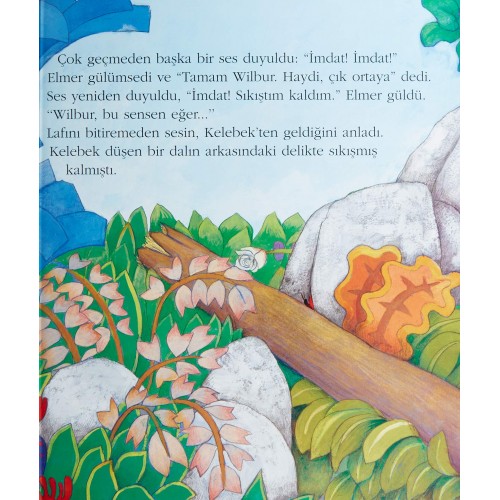 Elmer, yürüyüşe çıktığında bir ses duyuyor ve o yöne doğru gidiyor. Kelebek dostumuzu, düşen bir dalın arkasında sıkışmış olarak görüyor. Hemen ona yardım ediyor.