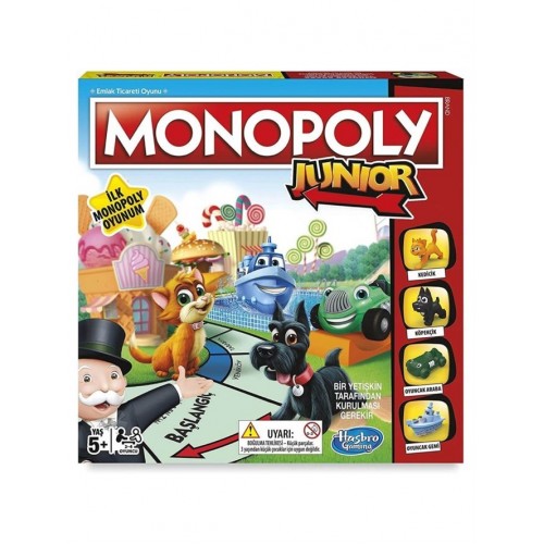 İşte çocukların ilk Monopoly oyunu! Monopoly Junior ile çocuklar Kedicik, Köpekçik, Oyuncak Araba ve Oyuncak Gemi gibi sevimli piyonlarla oyun alanında dolaşabilecek; Dondurmacı, Kaykay Parkı, Hayvanat Bahçesi gibi eğlenceli hanelerde durup onları satın alarak, Şans kartları çekerek ilerleyecek ve eğlenceli bir şekilde para kazanmayı öğrenecekler. Bir oyuncu iflas ettikten sonra en çok parası olan oyuncu kazanır!