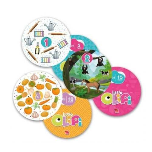 Bir insanın değişimi, gördüklerini fark etmesiyle başlar. Özellikle 3-15 yaşındaki bireylerin ayrıntıları fark etme becerilerini geliştiren OLİPİ, hem bireysel hem de gurupça oynayabileceğin bir oyun ve eğitim aracıdır. Üç farklı seviyede 135 kart ve bir zilden oluşmaktadır. Kartların ortasında bulunan 1,2,3 sayılarından hangisi varsa o kadar varlığı kartta bulup zile basman yeterli. Topladığın kartlardaki puanlar oyunu kazanmanı sağlar.