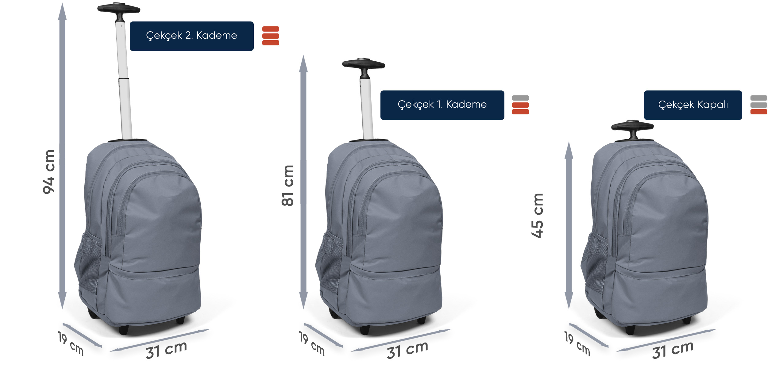 • Çekçek Kapalı iken Yüksekliği : 45 cm.