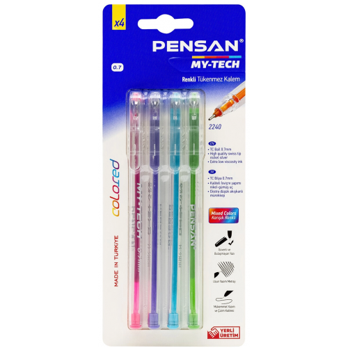 Yazılarınıza renk katmak ve notlarınızı daha eğlenceli hale getirmek için Pensan My-Tech 0.7 mm tükenmez kalemler tam size göre.
