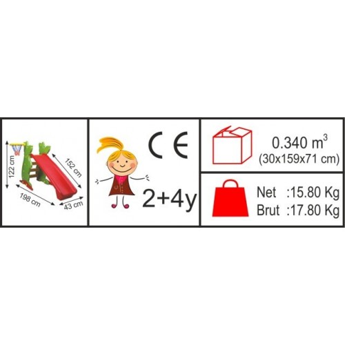 Ürün Ölçüsü : 198x61x122 cm, Kaydırak Ölçüsü:152x43 cm