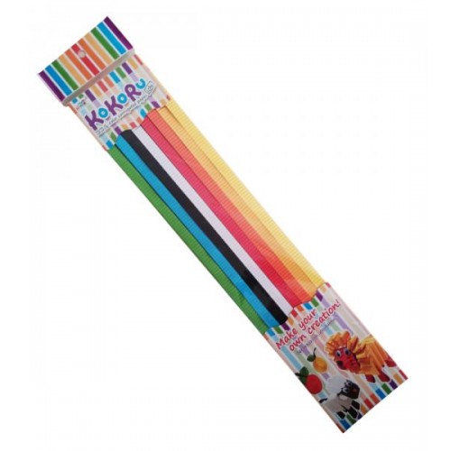 Kokoru 500 x 13 mm ebatlarında 8 renkli kıvrımlı kağıtlardan oluşan bir üründür.